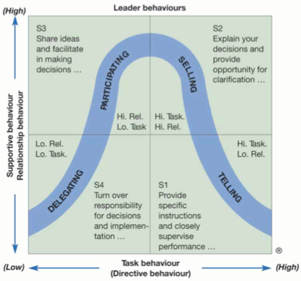 - Task behaviour: providing appropriate directions, sets goals and defines roles